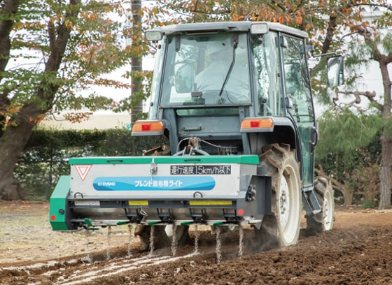 現場の声から生まれた “ちょうどいいサイズ”。20PS〜のトラクターに対応し、有機肥料散布に最適なブレンド散布機が誕生しました。鶏ふん・有機ペレットなどの有機肥料から化成肥料まで、幅広い肥料を均一に混合し、適正に散布できます。
