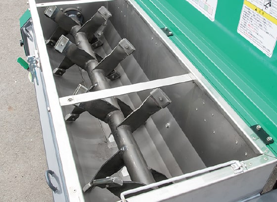 ステンレス製ホッパーを採用。混合羽根が肥料をムラなく混ぜ合わせます。